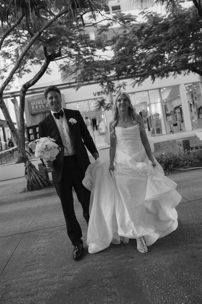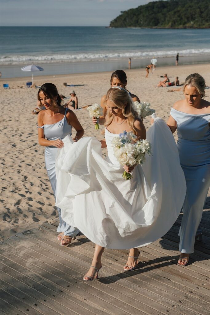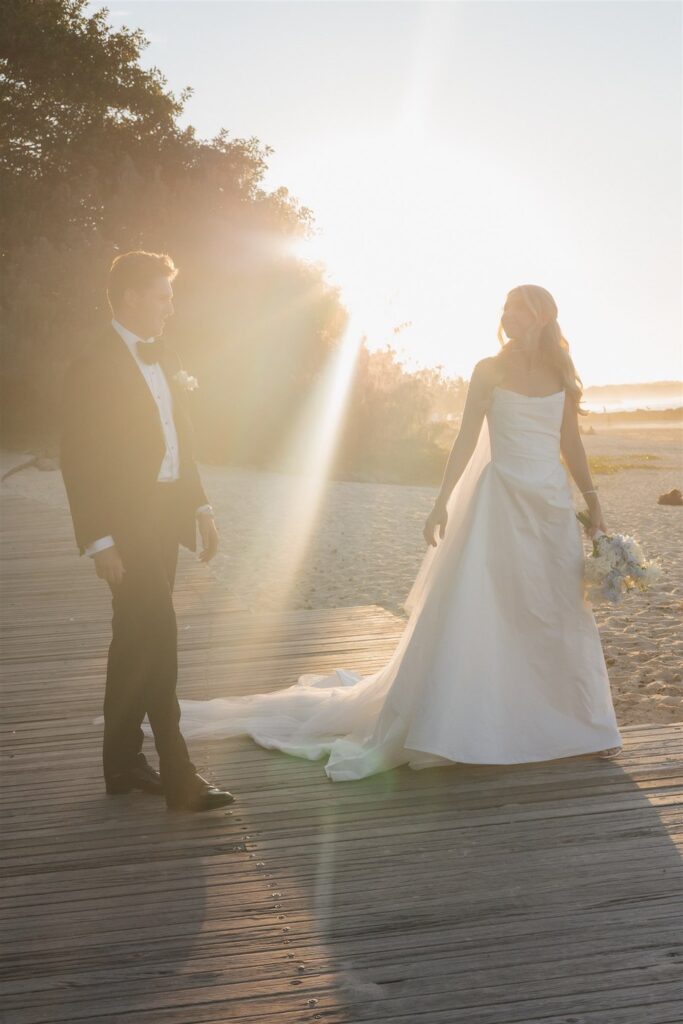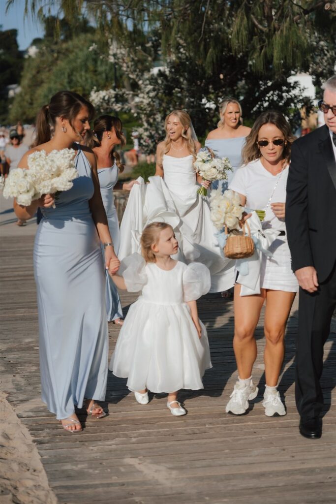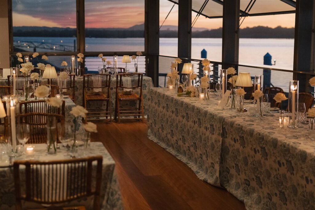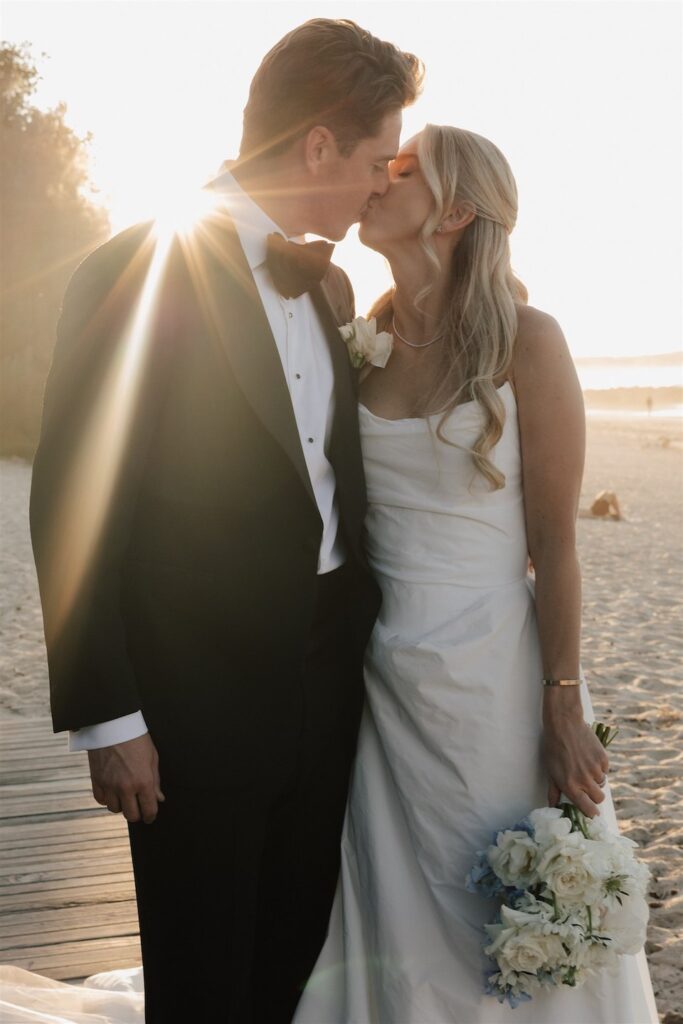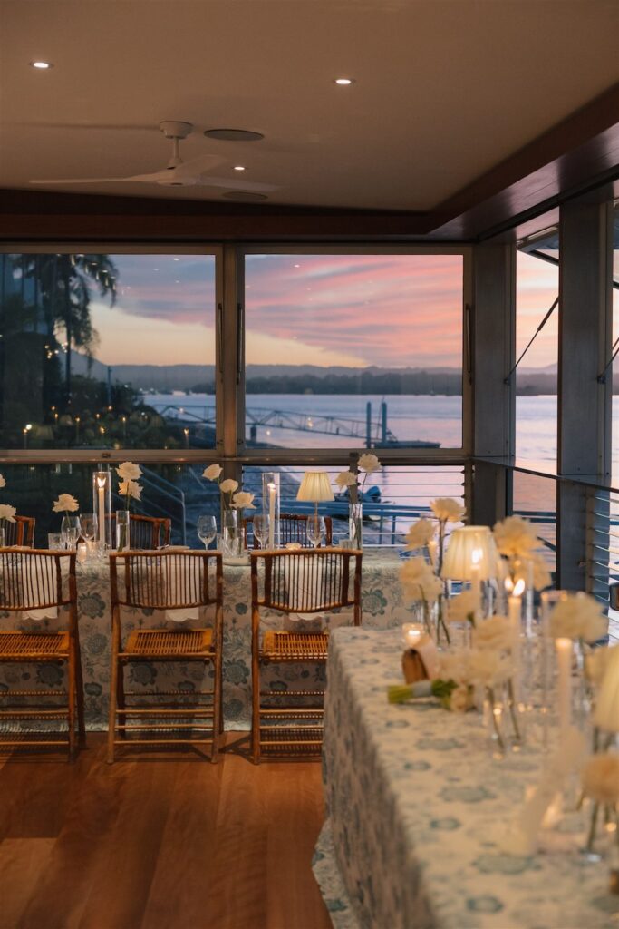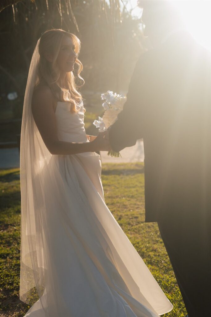 Hannah and Chris celebrated their stunning wedding with a ceremony at Hidden Grove, Noosa, followed by a chic reception at Ricky’s restaurant. The day embraced a Hamptons-inspired, black tie aesthetic with a soft and tranquil colour palette of light blue, cream and white.