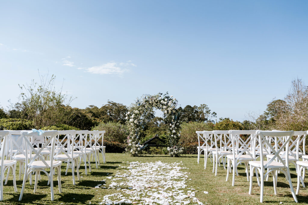 Willow Bud Wedding Florist created these wedding flowers and bridal bouquets. The wedding ceremony and reception designs were created specifically for this bride at this Sunshine Coast wedding venue, but this style could be created at many of our beautiful Sunshine Coast Hinterland wedding venues in Maleny, Montville, Mapleton, Obi Obi, and Flaxton. This wedding styling and wedding florals would also match perfectly with venues and beaches in Noosa, Mooloolaba, Caloundra, and private properties across the Sunshine Coast.