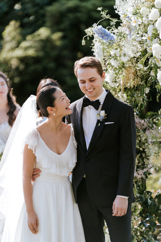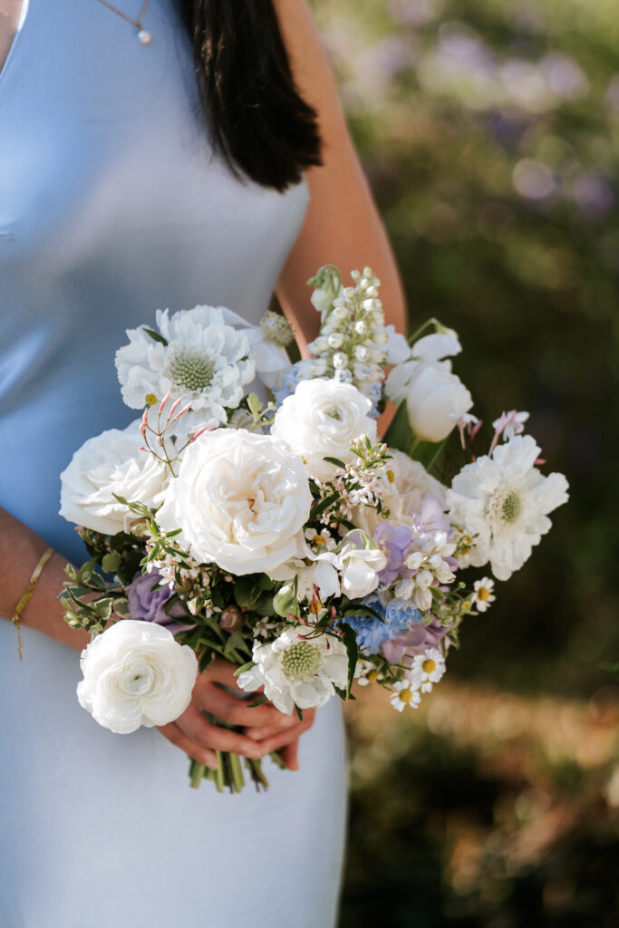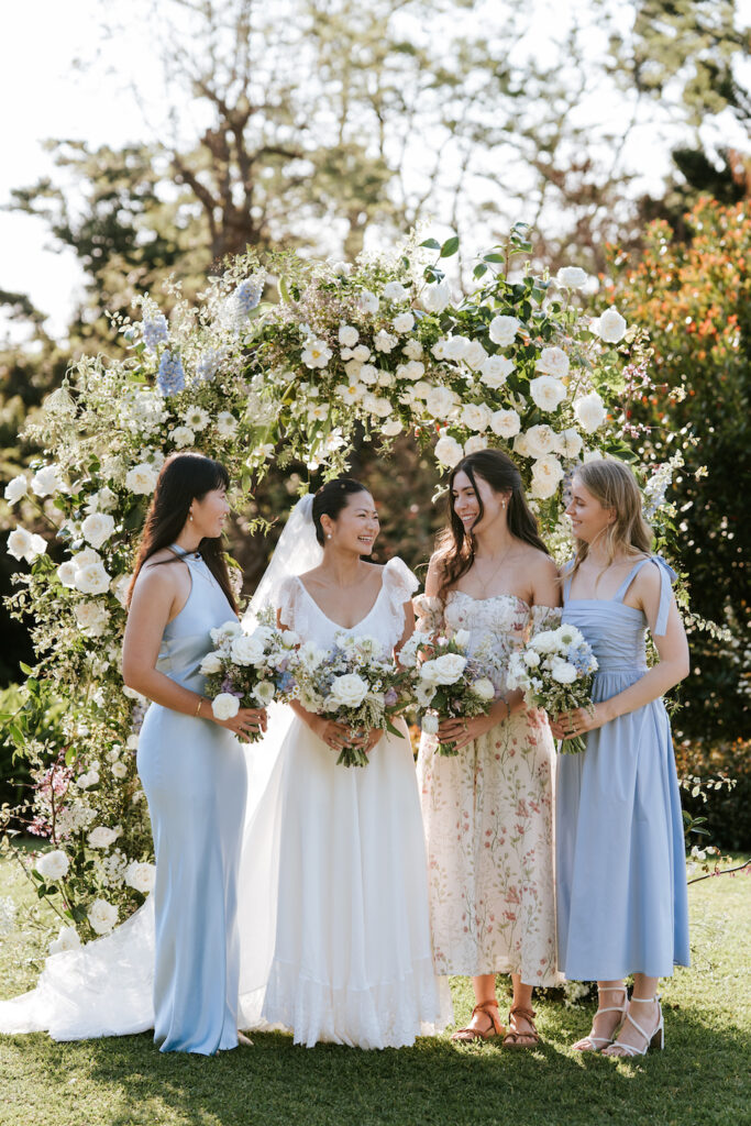 As Rachel and Oliver’s wedding florist, we drew inspiration from their love of delicate, whimsical blooms – creating designs that felt effortlessly light and full of movement, with our signature Willow Bud softness and romance. Their ceremony featured a lush, floral garden arch bursting with dreamy blooms including tulips, daisies, scabiosa, roses, anemones, sweet peas, delphinium, Queen Anne’s lace and ranunculus (and many more!), which created a dreamy backdrop for their vows and the most beautiful photos to follow.