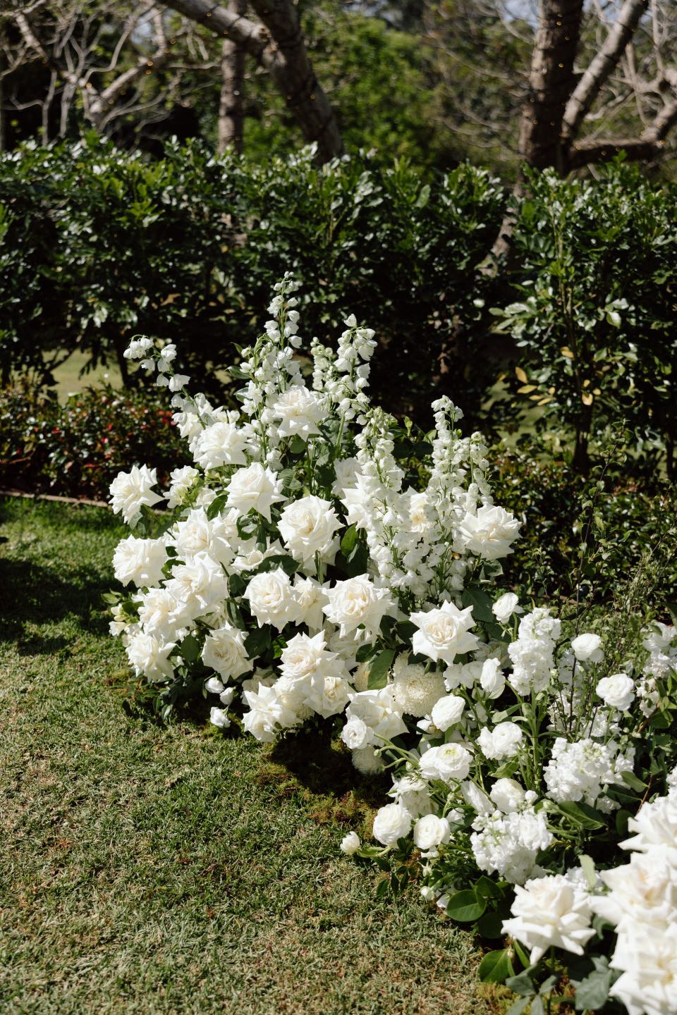 DREAM – CLASSIC – ABUNDANT – ROMANTIC Mika and Jacky’s Sunshine Coast Hinterland wedding was an absolute dream, with abundant white blooms featuring roses and orchids throughout. From the broken arch ceremony backdrop to the bespoke tablescape of mixed vessels it all came together as the perfect day.